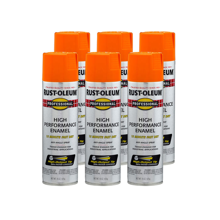 Rust-Oleum 7555838 Professional High Performance Enamel Spray Paint, 15 Oz, Gloss Safety Orange (Pack of 6)