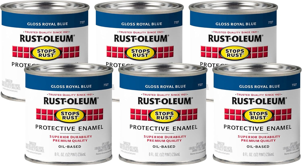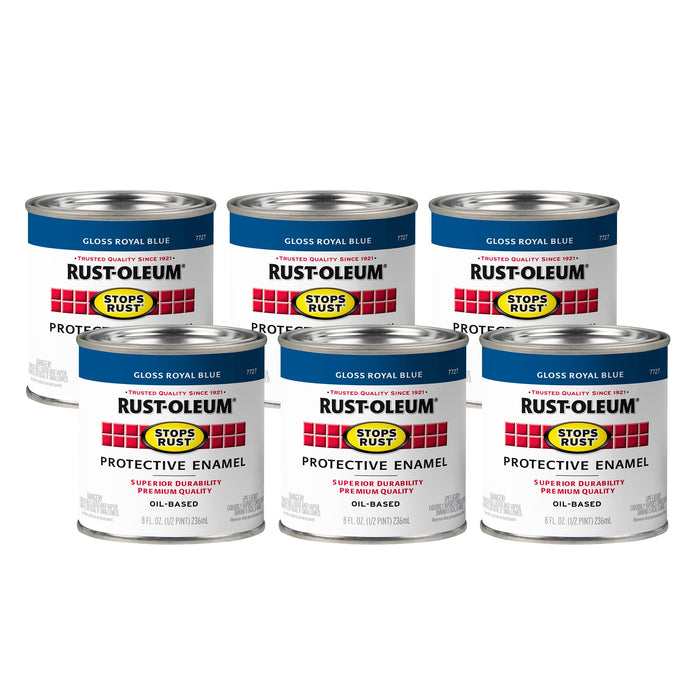 Details for Rust-Oleum 7727730 Stops Rust Brush On Paint, Half Pint, Gloss Royal Blue, 48 Fl Oz (Pack of 6)