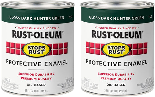 Rust-Oleum 2PK Stops Rust Brush On Paint, Quart (2 Pack), Gloss Dark Hunter Green, 64 Fl Oz