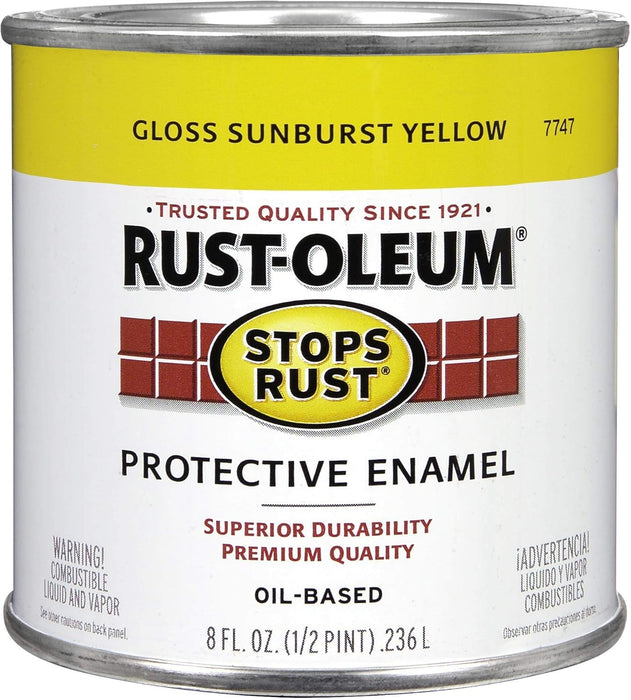 Rust-Oleum 7747730 Stops Rust Brush On Paint, Half Pint, Gloss Sunburst Yellow 8 Fl Oz (Pack of 1)