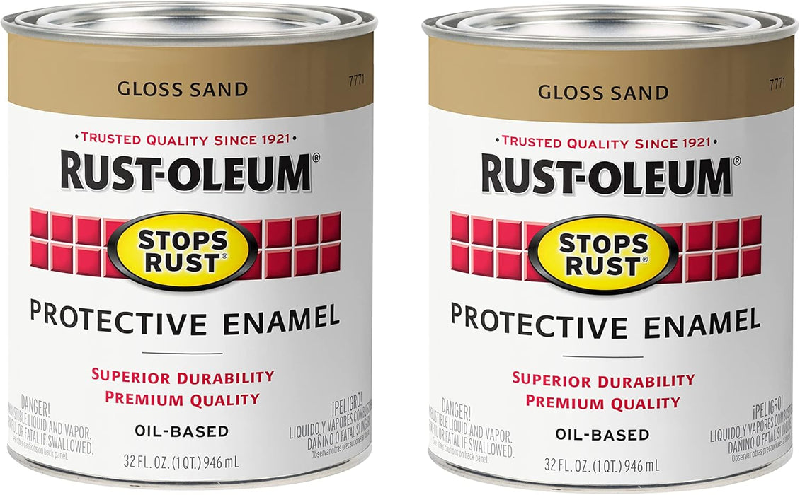 Rust-Oleum 7771502 Stops Rust Brush On Paint, Quart, Gloss Sand, 32 Fl Oz (Pack of 2)