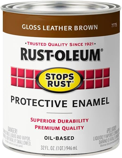 Rust-Oleum 7775502 Stops Rust Brush On Paint, Quart, Gloss Leather Brown (Pack of 2)