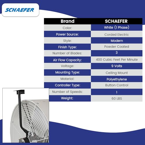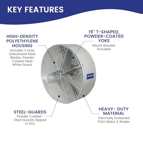 Schaefer VK36 Versa-Kool Air Circulator Fan, Ceiling Wall Mount Greenhouse Fan & Steel Guards, 11400CFM,1/2 hp