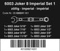 • Suitable for docking with the Wera 2go system; 1x 6003 Joker 8 Imperial Set 1 ring spanner set, Imperial, 8 pieces; 8x 6003 Joker ring spanner, Imperial: 5/16''x115, 3/8''x125, 7/16''x135, 1/2''x160, 9/16''x167, 5/8''x182, 11/16''x210, 3/4''x230