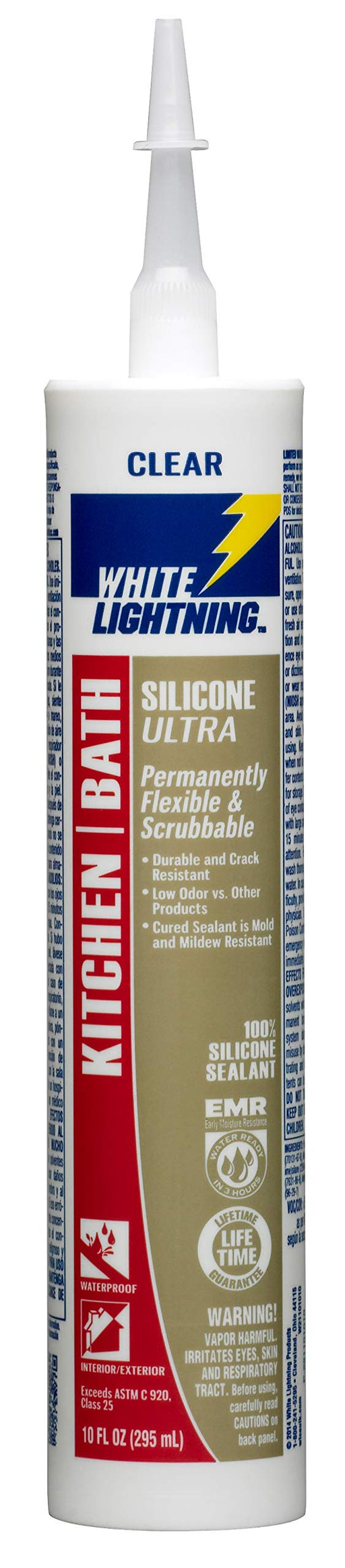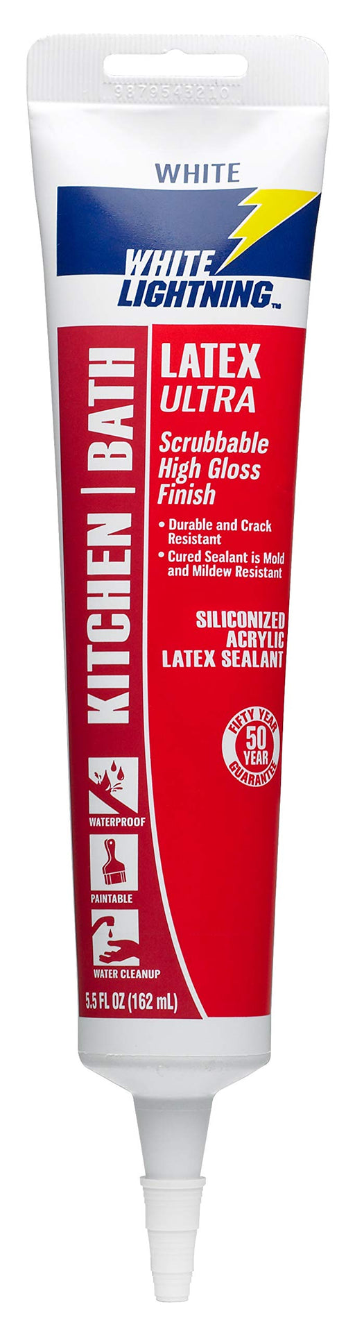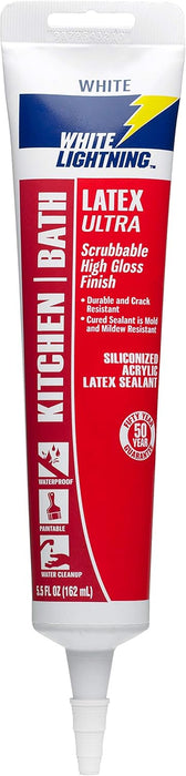 White Lightning W21000005 Latex Ultra Kitchen and Bath Premium High Gloss Sealant, White, 5.5 fl. oz.